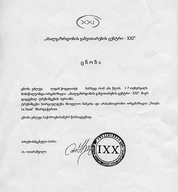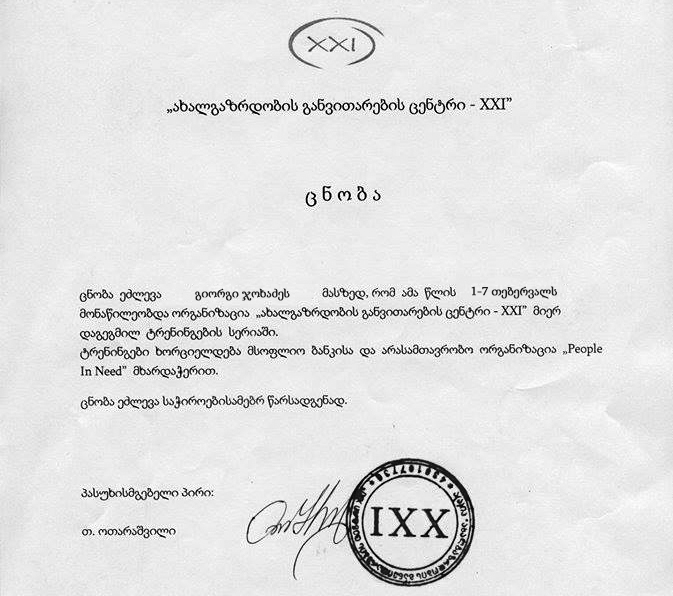 P.S. სტატიის გამოქვეყნების შემდეგ გამოგვეხმაურა ორგანიზაცია "ახალგაზრდობის განვითარების ცენტრი - XXI", რომლის გამოგზავნილ წერილსაც უცვლელად გთავაზობთ: