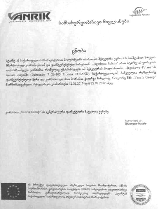 გაცნობებთ, რომ აღნიშნული ცნობების შესახებ ინფორმაციას არ ვფლობთ და არ არის ხელმოწერილი ორგანიზაციის უფლებამოსილი პირის მიერ, გაყალბებულია ბეჭედი და გამოყენებულია ორგანიზაციის ლოგო. როგორც ირკვევა, ბოროტად ისარგებლა ორგანიზაციის ყოფილმა წევრმა და აუდიტორია 115-ის წევრებისათვის დაამზადა ყალბი ცნობები.
