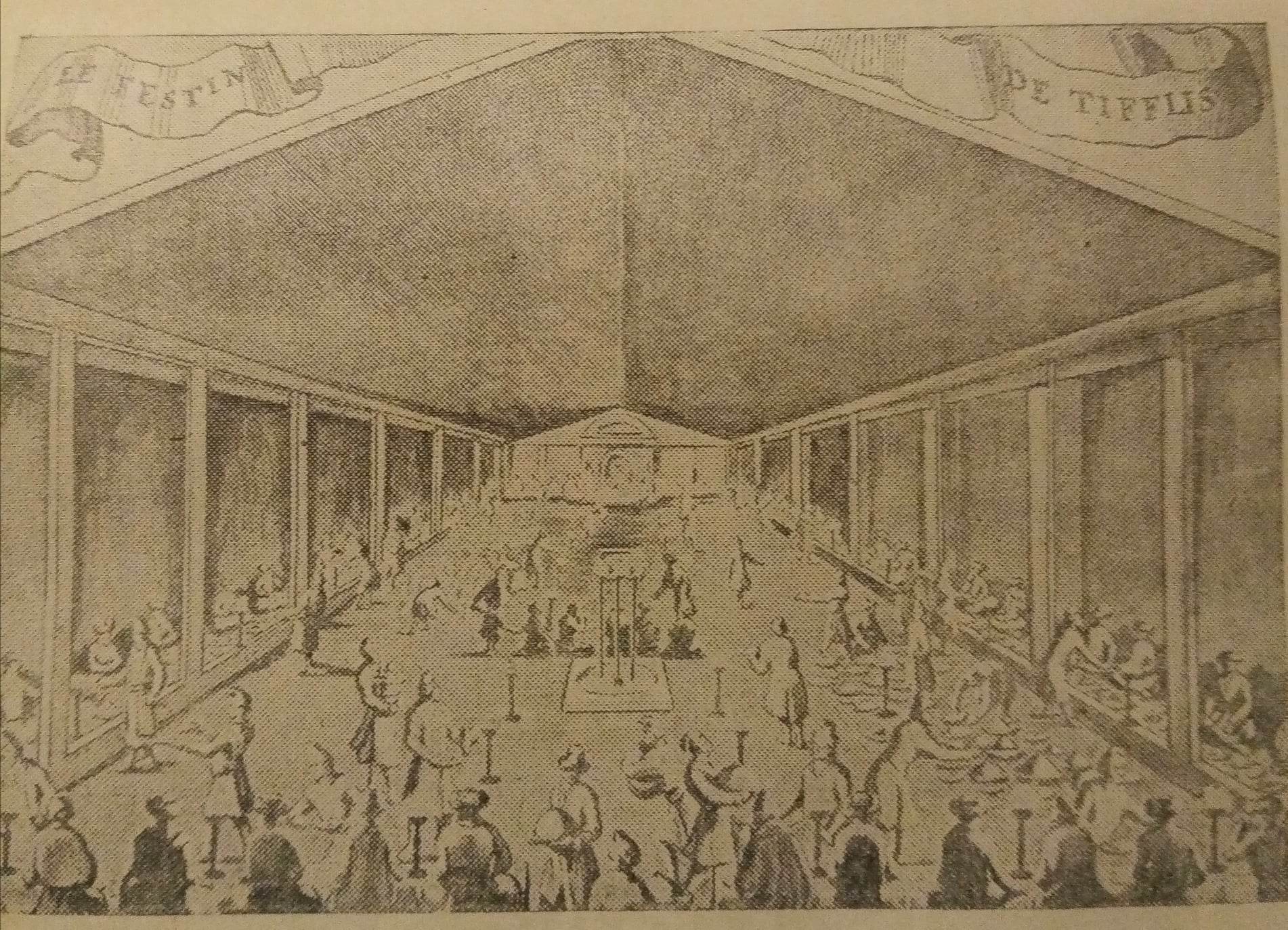 ერთადერთი ამ დარბაზთაგანი თბებოდა ღუმელით, რომელიც მეფე ერეკლე პირველის დროს რუსმა ოსტატმა ააგო და მას რუსულ სახელს "ფეჩის ოთახს" ეძახდნენ... ამ შენობის აქეთ-იქით მიშენებული იყო ორი ორსართულიანი ფლიგელი სარდაფებით. თითოეული ოცი ოთახისგან შედგებოდა. მათში მოთავსებული იყო მეფისა და დედოფლის ამალა. სასახლის წინა მოედნის შუაგულში აგებული იყო მარმარილოს შადრევანი, წყალი გამოყვანილი იყო აქ წავკისის მთებიდან. მარმარილოს ორი ლომის პირიდან გადმოდიოდა იმ წყლის შადრევანი, რომლითაც სასახლის ბაღები ირწყვებოდა. თვით ბაღში იდგა პატარა ნაგებობა, რომელშიც მოთავსებული იყო მინერალური გოგირდის წყლის აბანო..."