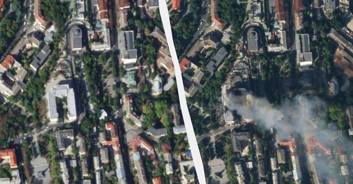 არადა თვითმხილველების მიერ გადაღებული ფოტო-ვიდეო კადრები, რომლებსაც მეორე დღესვე დაემატა კომერციული თანამგზავრებიდან გადაღებული, ამ შენობის მაღალი ხარისხის ფოტოებიც, სულ სხვა რამეზე მეტყველებდნენ-შენობის დაზიანების ხარისხი ძალიან მაღალი იყო და რაკეტებმა როგორც ჩანს ჯერ რამდენიმე სართული ჩაანგრიეს და მხოლოდ ამის შემდეგ აფეთქდნენ უშუალოდ შტაბის შიგნით, რამაც ბევრად დიდი ნგრევა გამოიწვია. თავდასხმიდან მეორე დღეს უკრაინის სამხედრო დაზვერვის მთავარი სამმართველოს უფროსმა გენერალმა ბუდანოვმა დააკონკრეტა, რომ მისი მზვერავების მიერ მოპოვებული წინასწარი ინფორმაციის თანახმად,შტაბის შენობის სათათბირო დარბაზში გაფართოებული სხდომა მიმდინარეობდა და სარაკეტო დარტყმების შედეგად არანაკლებ 9 რუსი მაღალჩინოსანი სამხედრო დაიღუპა, 16 კი დაიჭრა,მძიმედ დაჭრილთა სიაში კი არიან რუსეთის საოკუპაციო ძალების სამხრეთი დაჯგუფების სარდალი გენერალ-პოლკოვნიკი რომანჩუკი და შტაბის უფროსი გენერალ-ლეიტენანტი ცეკოვი, ხოლო შავი ზღვის ფლოტის სარდლის ვიცე-ადმირალ სოკოლოვის მდგომარეობას ეხლა ვარკვევთო (მოგვიანებით, გავრცელდა ინფორმაცია, რომ სოკოლოვი ცოცხალი ყოფილა)...