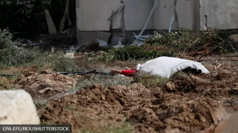 საშინელება ტრიალებს კიბუცის ქუჩებში, მოკლულ "ჰამასელთა" გვამები ქუჩებში მზის გულზე ყრია, მათ მოსახლეობა არ ეკარება. ზოგიერთის გვამს ბუჩქებში, არხებში და სად არ ნახავთ...