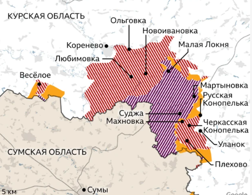 ეს მიმართულება აბსოლუტურად საწინააღმდეგოა ქალაქ კურსკიდან, რაც ერთი მხრივ გაკვირვებას იწვევს -ლოგიკით, უკრაინის საექსპედიციო კორპუსი თითქოს უფრო ჩრდილოეთით შეტევებზე უნდა ფიქრობდეს...