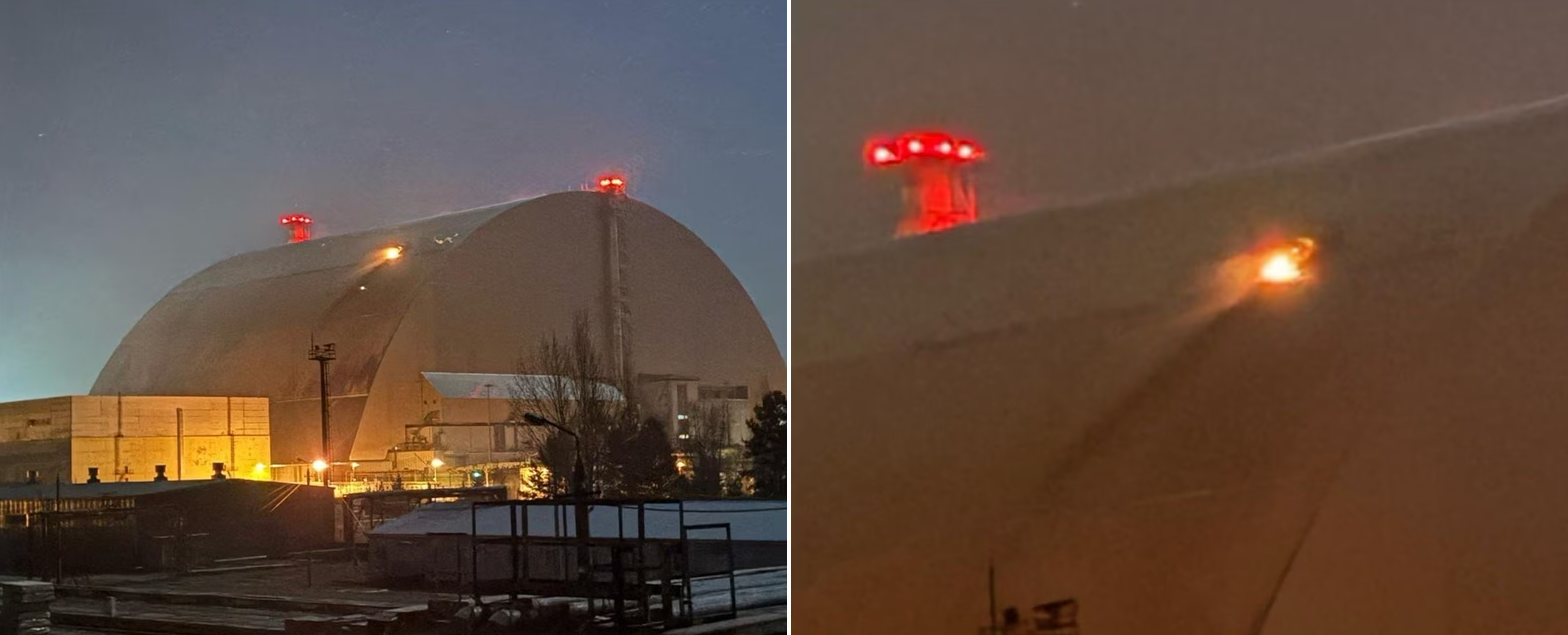 როგორც ატომური ენერგიის საერთაშორისო სააგენტოს-IAEA დამკვირვებლები იუწყებიან (რუსეთთან ომის გამო ამ სააგენტოს დამკვირვებლები განთავსებული არიან უკრაინის ყველა ატომურ ელექტროსადგურზე, მათ შორის რუსეთის მიერ დაპყრობილ ევროპაში უდიდეს ზაპოროჟიეს ატომურ ელექტროსადგურზეც), რომ მართალია კამიკაძე-დრონის შეჯახებამ და აფეთქებამ გაარღვია სარკოფაგის გარსი, მაგრამ რადიოაქტიური ნაწილაკების გაბნევა ატმოსფეროში საბედნიეროდ არ მომხდარაო...