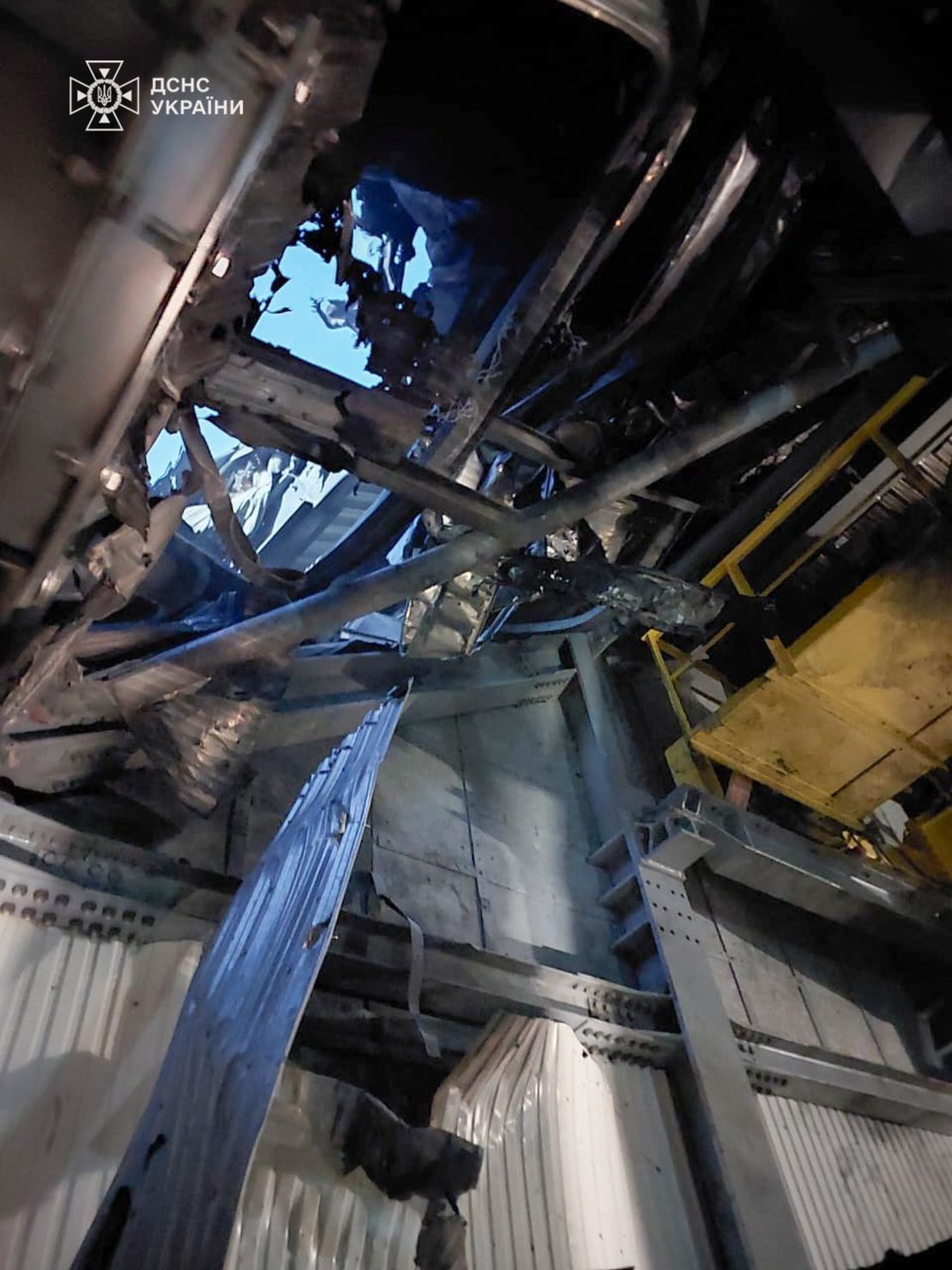 კამიკაძე-დრონის სარკოფაგზე შეჯახებისას მოხდა აფეთქება, რომელმაც გაარღვია დამცავი გარსი და გამოიწვია ხანძარი, რომელიც უკრაინელმა მეხანძრეებმა მალევე ჩააქრეს.