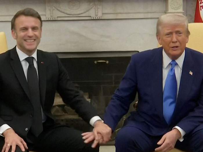 უკრაინის ომის თემაზე საუბრისას, ტრამპმა განაცხადა, რომ ამერიკა ვერ იბრუნებს იმ მილიარდებს, რითაც უკრაინას დაეხმარა, თორემ ევროპას ეს დახმარება კრედიტის სახით აქვს მიცემული კიევისთვის და ამ ფულს ამოიღებსო, რის შემდეგაც გვერდზე მჯდომ მაკრონს მარჯვენა ხელი მეგობრულად „მოუთათუნა“ მარცხენა მუხლზე...