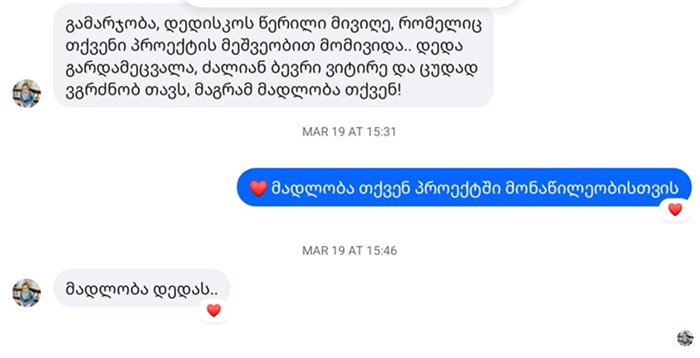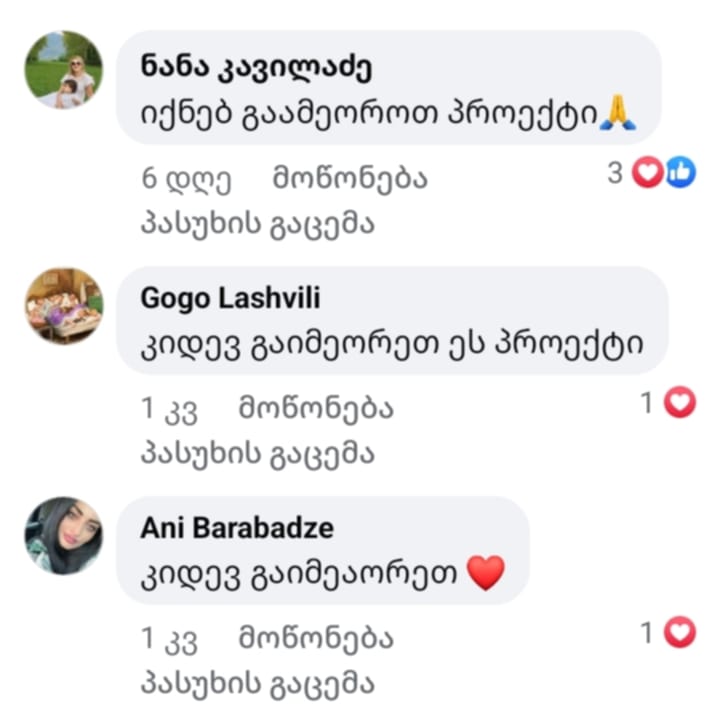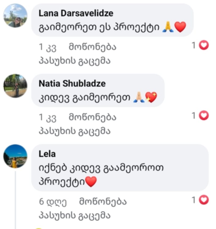 „რა კარგი პროექტია. არც ვიცოდი, თუ ასეთი საშუალება არსებობდა. მეც სიამოვნებით დაწერდი“.