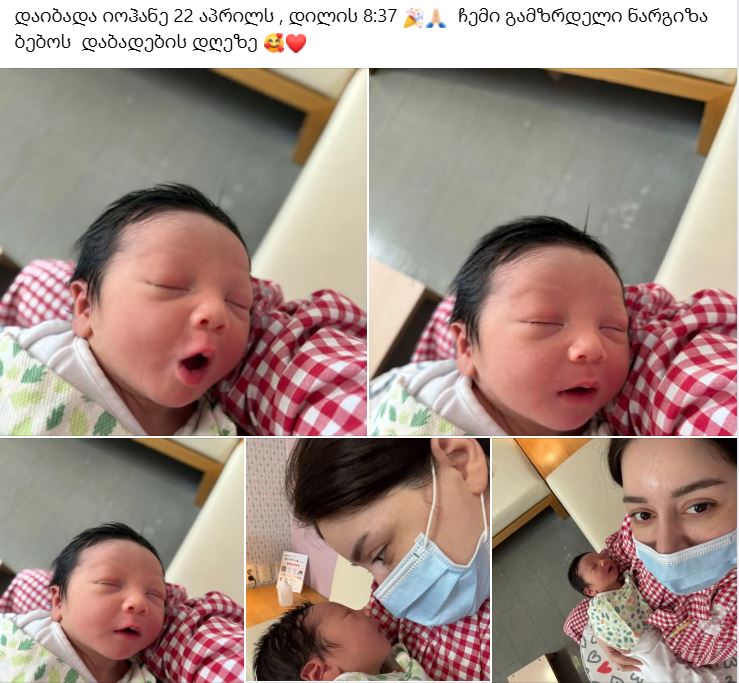 „3,7 კილოგრამი დაიბადა თავქოჩორა ბიჭი. მეც მხოლოდ 20- წამიან ვიდეოში ვნახე, თომამ რაც გადაუღო და დაკუჭულ, ჭყინტ ყველს ჰგავს.