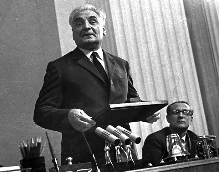 უეცრად დარბაზის კარი გაიღო და სერგო ზაქარიაძე შემოვიდა. ის იმ დროს უკვე ლენინური პრემიის ლაურეატი იყო. ნათამაშები ჰქონდა ფილმში "ჯარისკაცის მამა" და ყველა ჯარისკაცის მამის სიმბოლოდ ითვლებოდა. ბატონი სერგო მაშინ "ცეკას" წევრადაც იყო არჩეული. დაჯდა, 2 თუ 3 გამომსვლელს მოუსმინა და შემდეგ სიტყვით თავად გამოვიდა. უნდა მოგესმინათ, როგორ ილაპარაკა, ფილმი როგორ დაიცვა. წინა გამომსვლელებს, როგორც ტანკმა, ისე გადაურა და დაჯდა. ამის შემდეგ "ცეკას" პირველი მდივანი მჟავანაძე მობრუნდა და დასკვნითი სიტყვა თქვა: ხალხმა ნახოს!