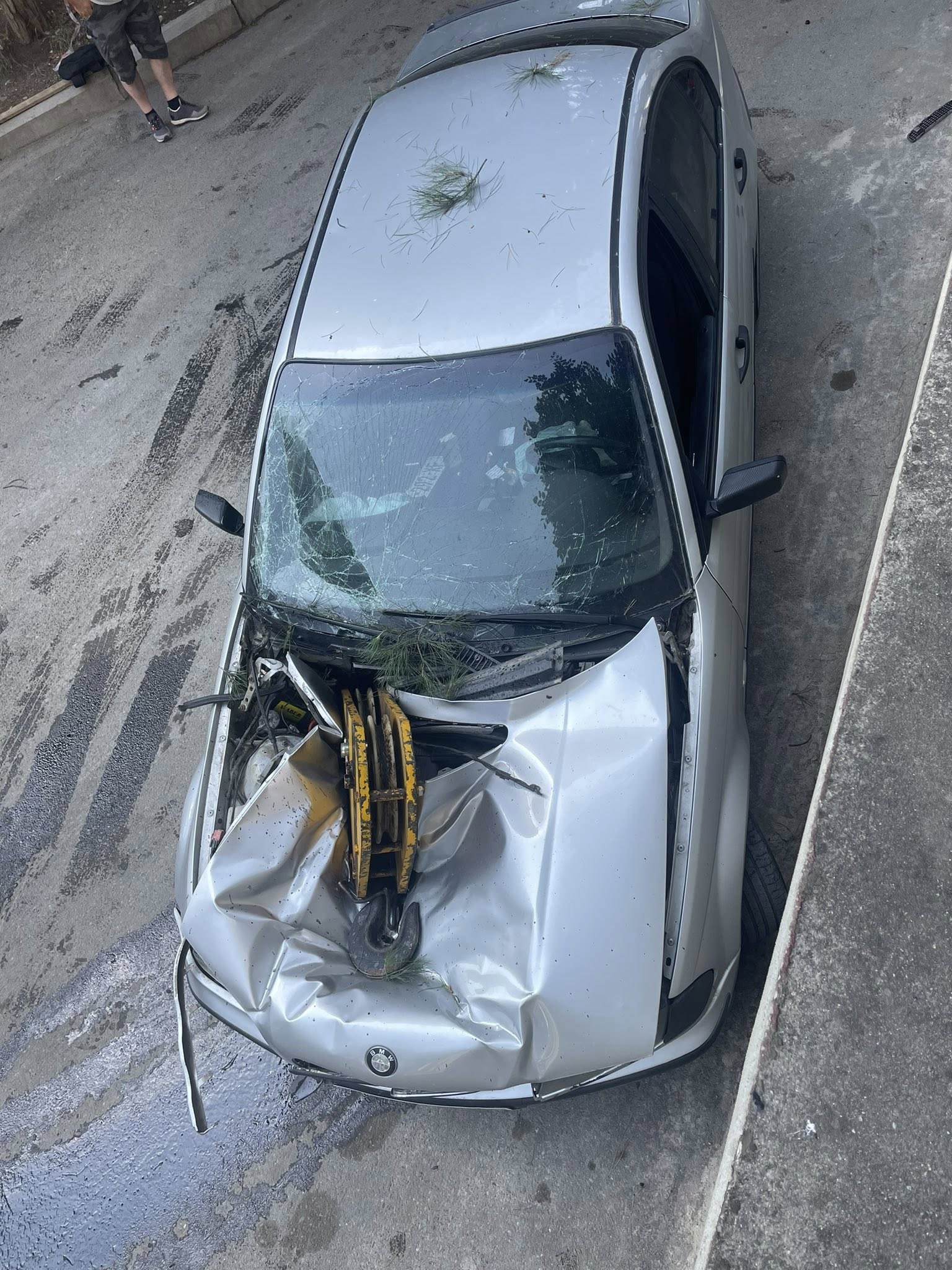 სოციალურ ქსელში მოქალაქე ფოტოებს აქვეყნებს და წერს, რომ ამწეს რამდენიმე ტონიანი კაუჭი მოსწყდა და მანქანას დაეცა: