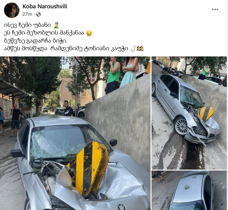 "ეს ჩემი მეზობლის მანქანაა ბეწვზე გადარჩა ბიჭი. ამწეს მოსწყდა რამდენიმე ტონიანი კაუჭი".