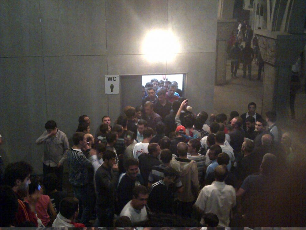 დროშები მართლა არ ვიცი, ვისი მიზეზია, მაგრამ ყბადაღებული ტუალეტების თემა ხომ უშუალოდ სატადიონისაა. აგერ ფოტოზე ნახეთ რა ხდებოდა ერთ-ერთ საპირფარეშოსთან...