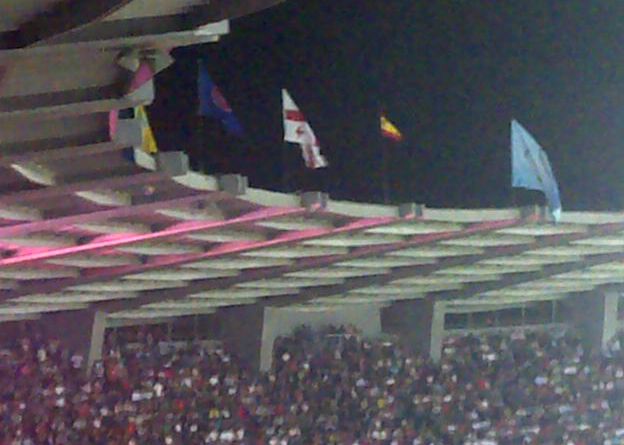 არ ვიცი, სტადიონს ეკუთვნის, თუ ფეხბურთის ფედერაციას, მაგრამ რა გახდა, ხალხო, წელიწადში 4-5 დროშის შეკერვა, ყიდვა ან რა ვიცი კიდევ რა... აგერ ფოტოზეა გამოსახული როგორი დროშები ფრიალებდა სტადიონის თავზე.