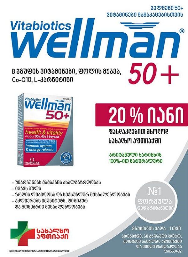 ველმენი 50+ - ეს არის ვიტამინი, რომელიც დიდ ბრიტანეთში აღიარებულია როგორც N1 ბრენდი 50 წელს გადაცილებული მამაკაცებისათვს.