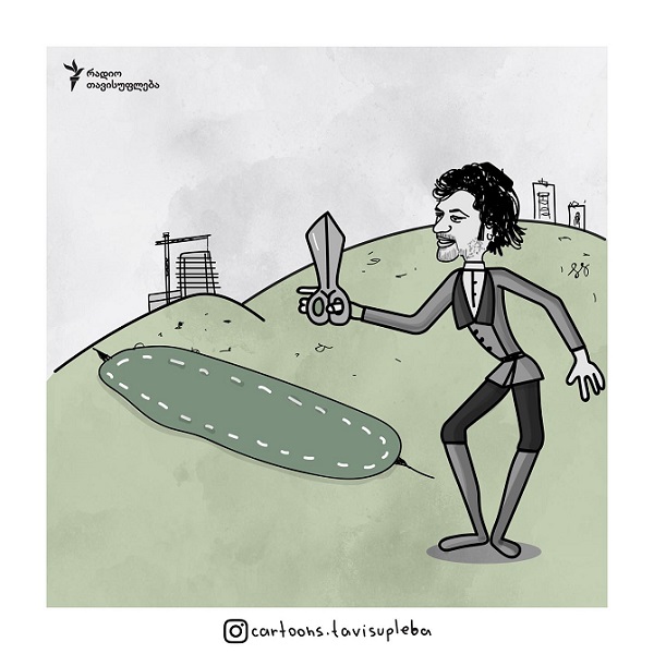 ამჯერად, კალაძემ "ფეისბუქის" პირად გვერდზე "რადიო თავისუფლების" "ფეისბუქ" გვერდიდან კარიკატურა გააზიარა, რომელიც ვაშლიჯვრის მეწყრულ ზონაში ნაპრალის ამოვსების თემატიკაზეა მომზადებული.