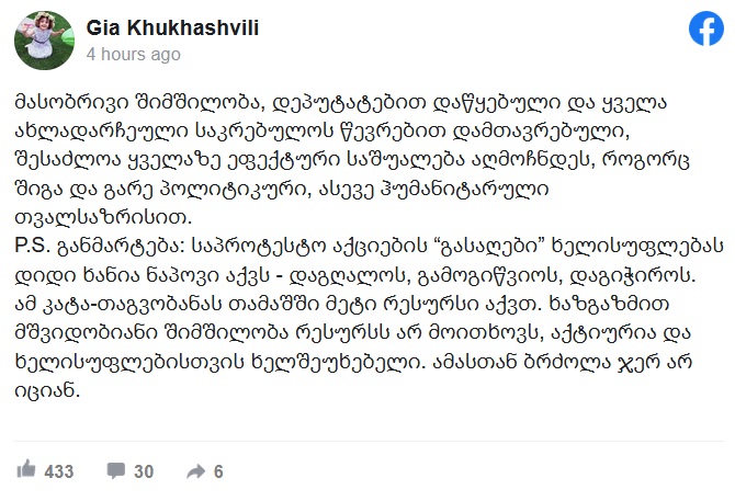 ანალიტიკოსი გია ხუხაშვილი სოციალურ ქსელში პოსტს აქვეყნებს: