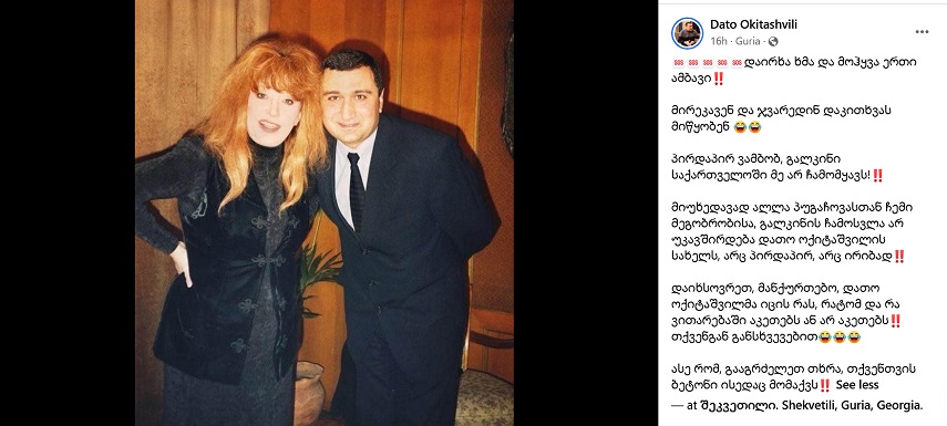 მიუხედავად ალლა პუგაჩოვასთან ჩემი მეგობრობისა, გალკინის ჩამოსვლა არ უკავშირდება დათო ოქიტაშვილის სახელს, არც პირდაპირ, არც ირიბად.