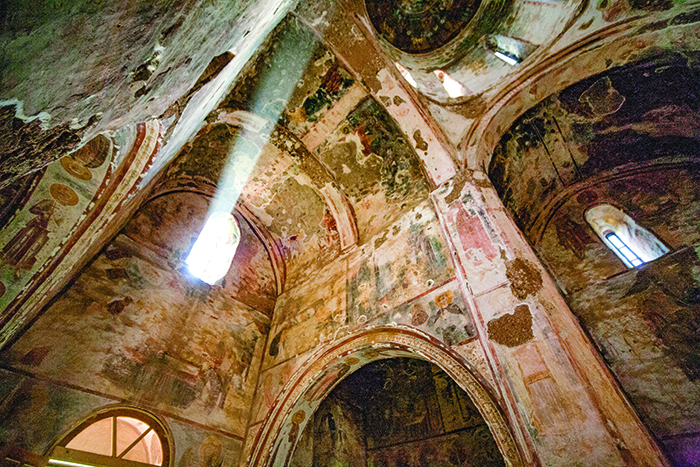 2) "ქრისტე პატრონისა ერისავთ-ერისთავისა და მანდატურთ უხუცესისა დადიანისა ვამეყის ბრძანებითა მოვ…... კონსტანტინეპოლით მხატვარი კირ მანოელი ევიგენკოს და... [ესე ეკლესია შეწევნითა ღმრთისაითა ვინცა შენ[დობასა ბრძ]ანოთ [თქვენ]ცა შეგინდოს {ღმერთმან} ამინ, ამინ, ამინ".…