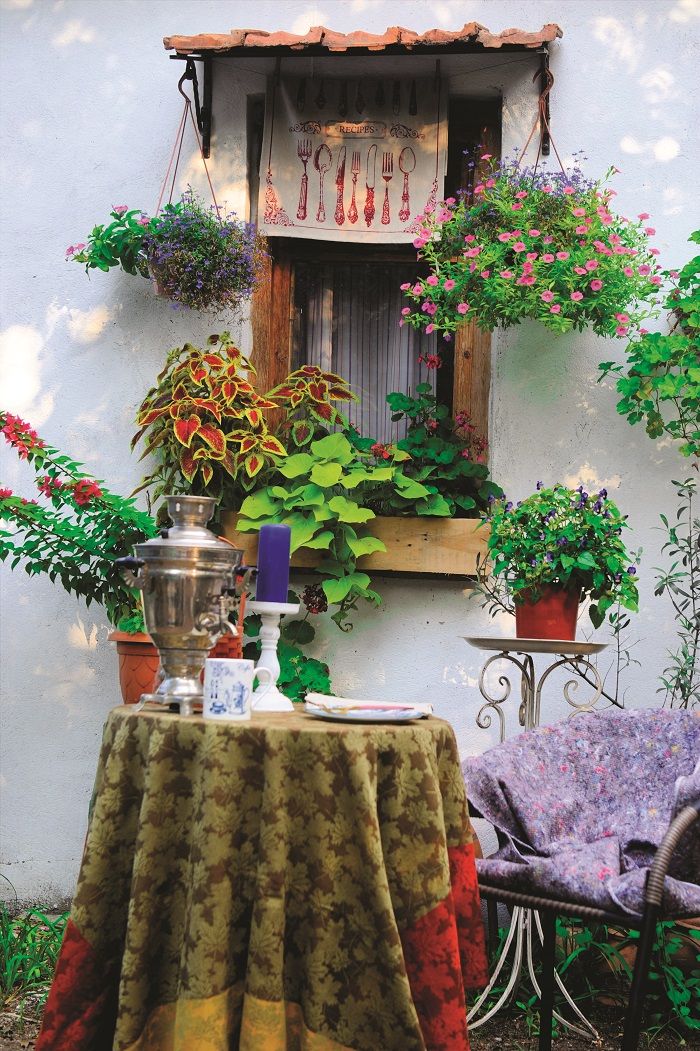 საინტერესოა სახლის არქიტექტურაც. მას რამდენიმე ფასადი აქვს. ერთი ნაწილი საბერძნეთის კუნძულების სახლებისთვის არის დამახასიათებელი, ლურჯ-თეთრი ფერის. მცენარეებსაც იმ ფერების მიხედვით ვარჩევთ, როგორსაც საბერძნეთის კუნძულებზე ვხვდებით. მეორე ფასადი შარშან გავაკეთეთ იტალიური სტილით, როგორსაც ფლორენციაში, ტოსკანის ძველ ქალაქებში შეხვდებით. თაღიანია, ძველი ქვებია გამოყენებული, რასაც ჩვენი დიზაინი ემატება. წლეულს იერი ერთ ფასადსაც შევუცვალეთ და სამხრეთ იტალიური ქალაქებისა და სოფლებისთვის დამახასიათებელი სტილისა გამოვიდა - თეთრი, კირით შეღებილი, ძველი დარაბებით, კრამიტით გადახურული ფანჯრებითა და ულამაზესი ყვავილებით.