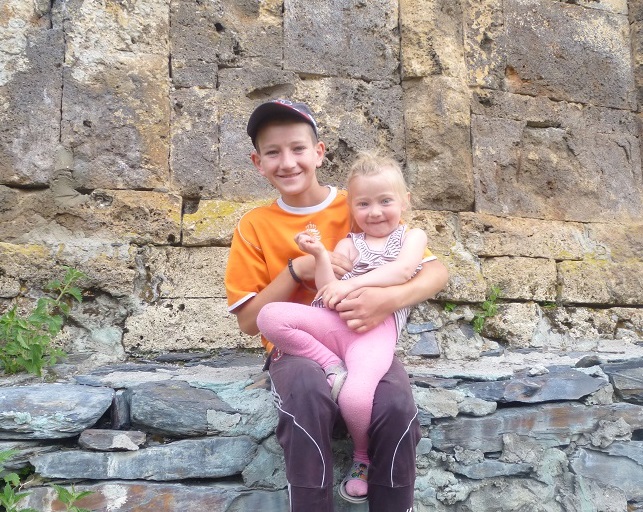 - ორი უფროსი ძმა და ერთი და მყავს. ძმები ახლა მინდორში არიან, გათიბეს იქაურობა (მიჩვენებს მინდორში მყოფ ძმებს და მიხსნის, იქითა ნატალიას მამა არისო - ი.ხ.). ყველანი ერთად ვცხოვრობთ, ამ სახლში.