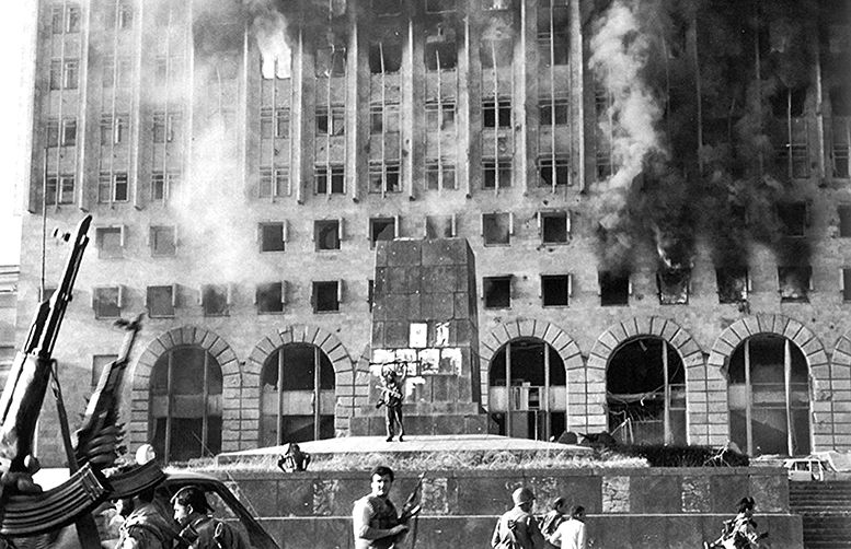 1992 წლის 14 აგვისტოს სამსახურამდე ბანკში შევიარე, ბანკის უფროსისგან, სვეტლანა არშბასგან ხელმოწერა მჭირდებოდა, მისი კაბინეტის კარი ჩაკეტილი დამხვდა, თუმცა ოთახიდან საუბრის ხმა მესმოდა. ამ დროს ქუჩიდან ყვირილი გავიგონეთ, "ვაინა ნაჩალას!" წამში მშვიდი, სრულიად ჩვეულებრივი ქუჩა ქაოსმა მოიცვა. ინსტინქტურად ტაქსის დავუწყე ძებნა, რომ შინ რაც შეიძლება სწრაფად დავბრუნებულიყავი, ერთხანს უიმედოდ ვიდექი იმ შეშლილ ქუჩაზე, მერე გავიგონე, "მარინა ტი კუდა, დავაი, სადის". ჩემი კარის მეზობელი იყო, ვალერა დელბამ მანქანის კარი გამიღო. გზაში ხმა არ ამოგვიღია, მერე უცებ: "მარინა, ვსიო ეტო ტვაი გრუზინი დელაიუტ!", მითხრა. არ გრცხვენია, ჩემად და შენად როდის აქეთ გავიყავით-მეთქი... ეს იყო მე და ჩემი კარის კარგ მეზობელს შორის ბოლო საუბარი.